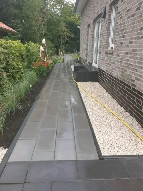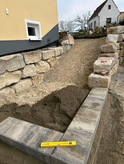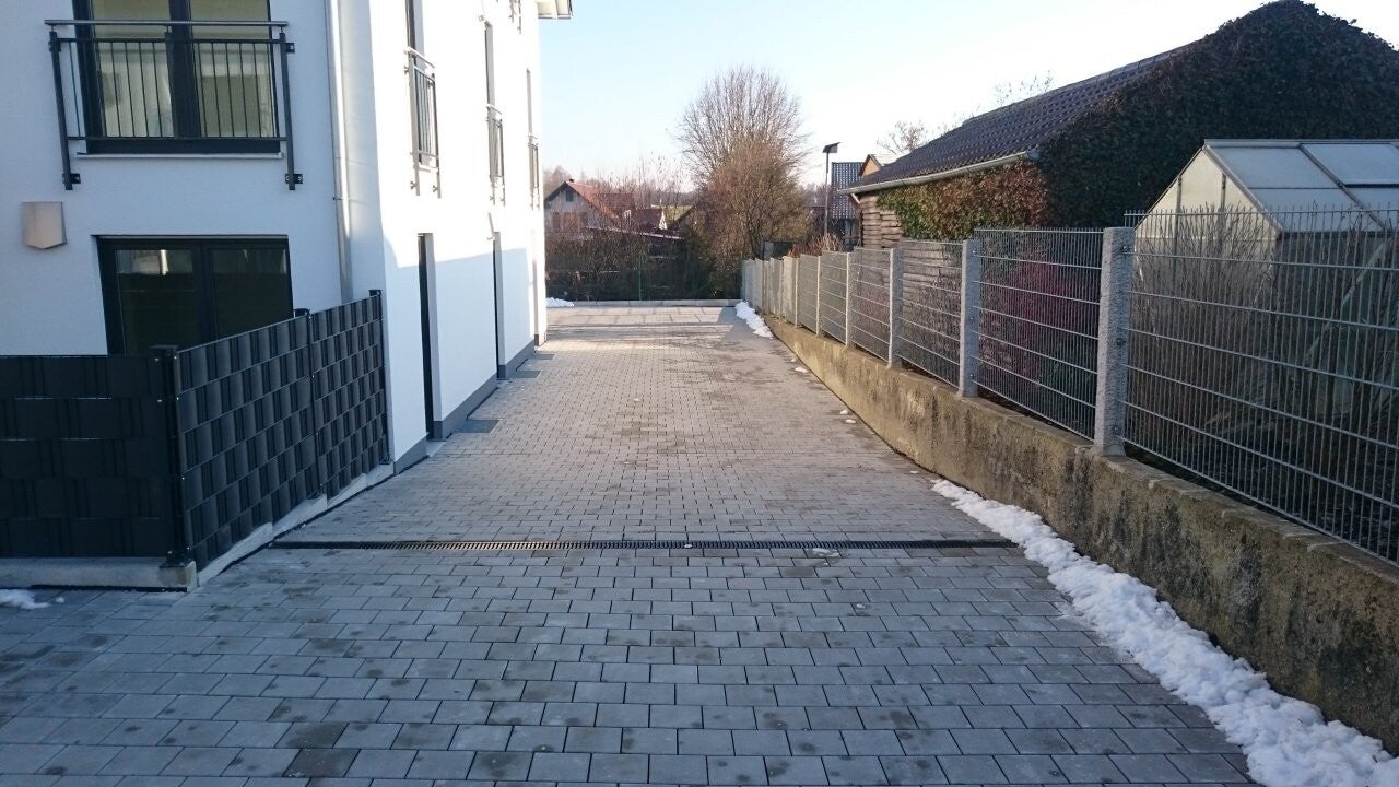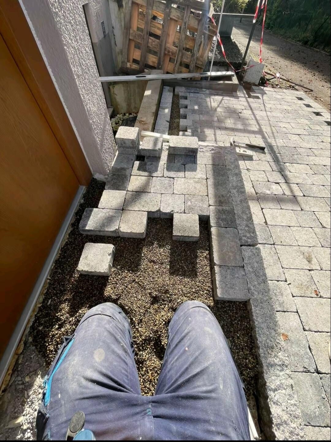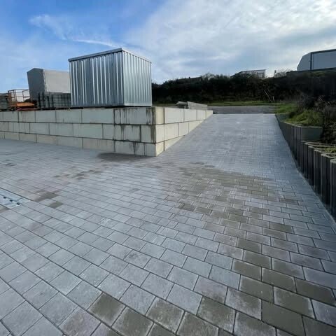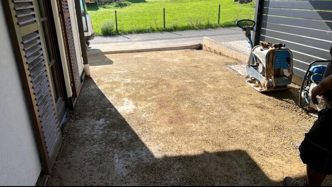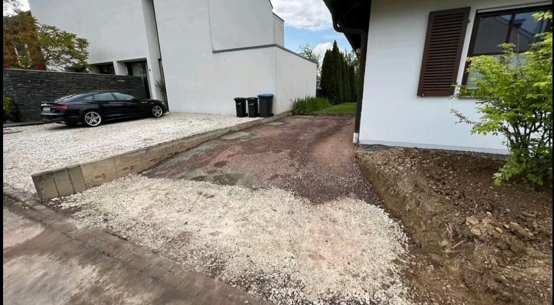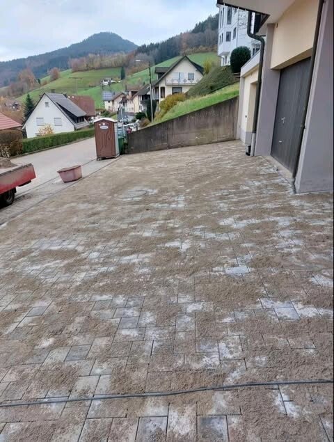 Dort dürften wir die Ein und Zufahrt so wie die Parkfläche Pflastern